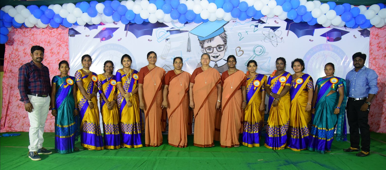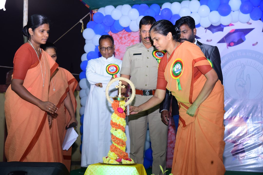 Chief guest Mr.Srinivas our MEO and Guest of honour Mr.Vijayaraju .K of this function, Rev.Fr.Showri babu our Parish Priest Rev.Sr.Theresa our Correspondent for presiding over this colorful festivity.