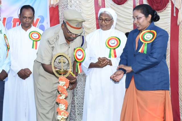 Special guests Rev.Fr.Showri Babu our Parish Priest, Rev. Sr. Tresa our correspondant and Rev. Sr. Mary Sowjanya our Principal to light the kuthuvelakku and vibrate the light of positivity.